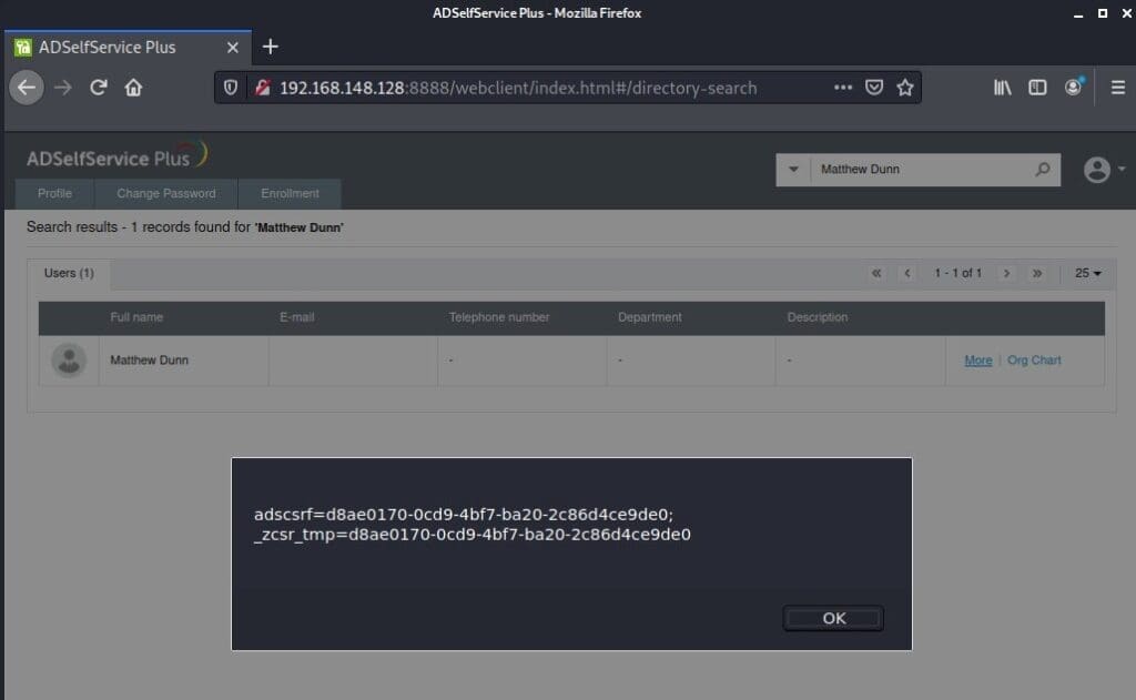 Cross-Site Scripting Vulnerability in ManageEngine AD Self Service Plus (CVE-2021-27956)