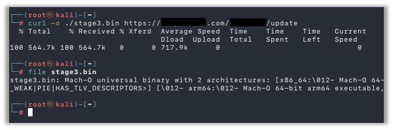 Here, I’ve downloaded the file to confirm it’s still available and to confirm it’s a Mach-O binary for MacOS systems:
